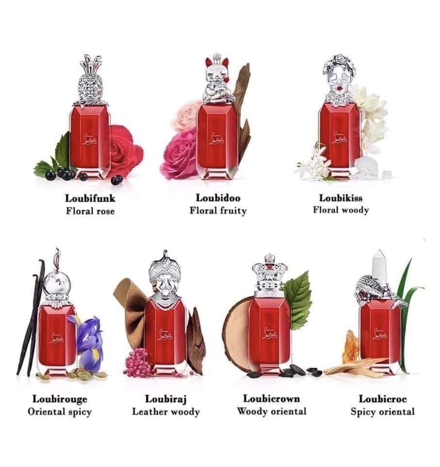 • LOUBIFUNK EDP: mùi hương được pha chế với blackcurrant, hoa hồng Thổ Nhĩ Kỳ và hoắc hương nhẹ nhàng và vui tươi.